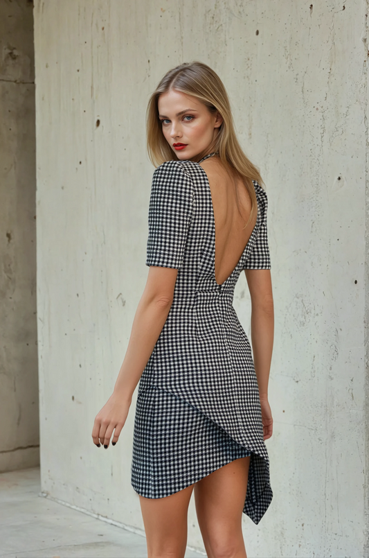 Rina Kleid- Stoff: Black Check