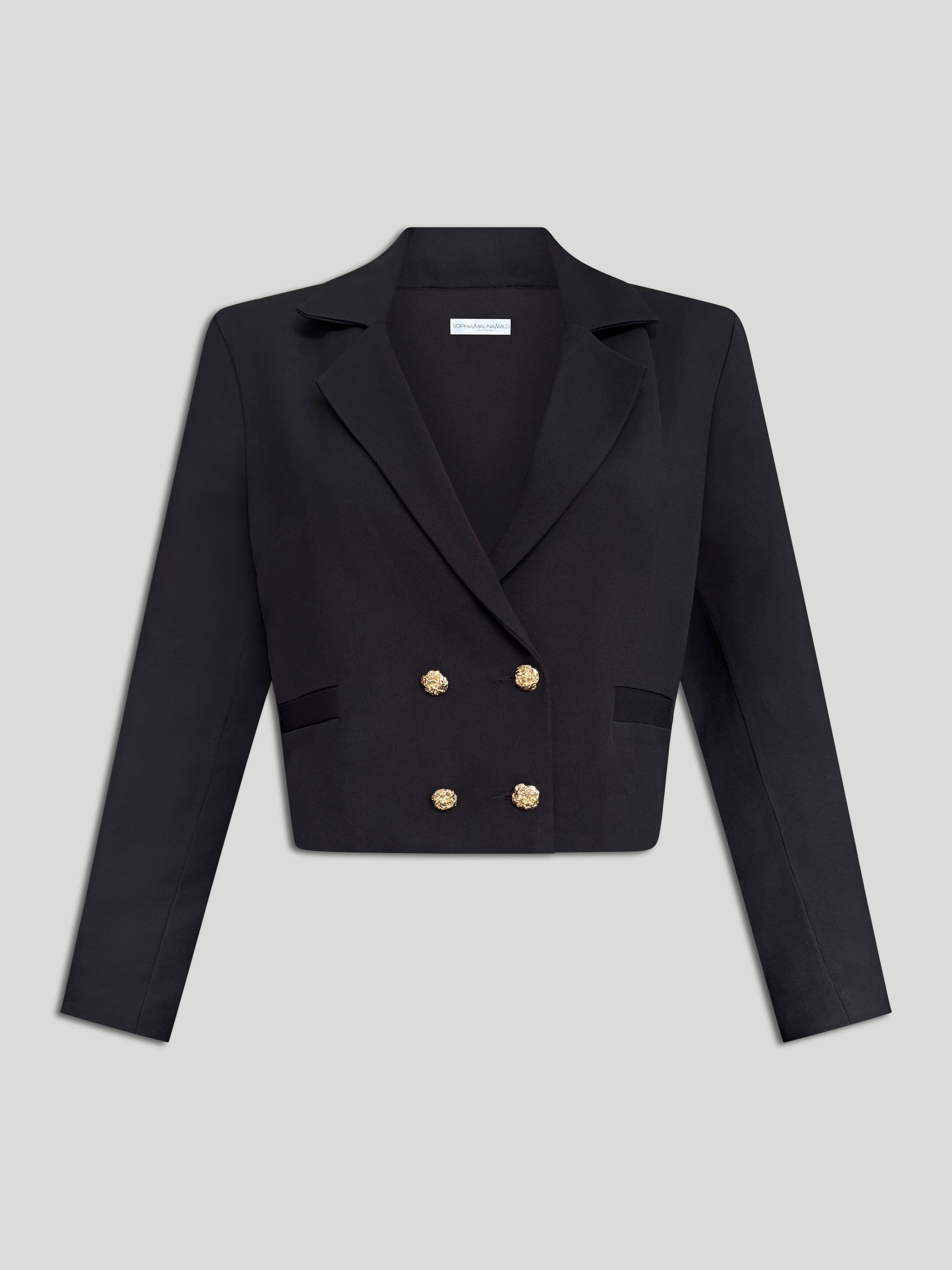 Entdecke unsere kurze Jacke in schwarz mit edlen goldenen Knöpfen.